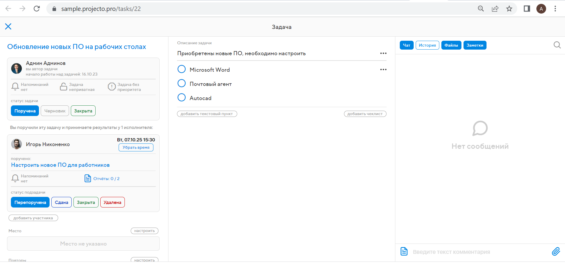 - Работа в реальном времени: видно, кто над чем работает, а также новые задачи и сообщения в чате.