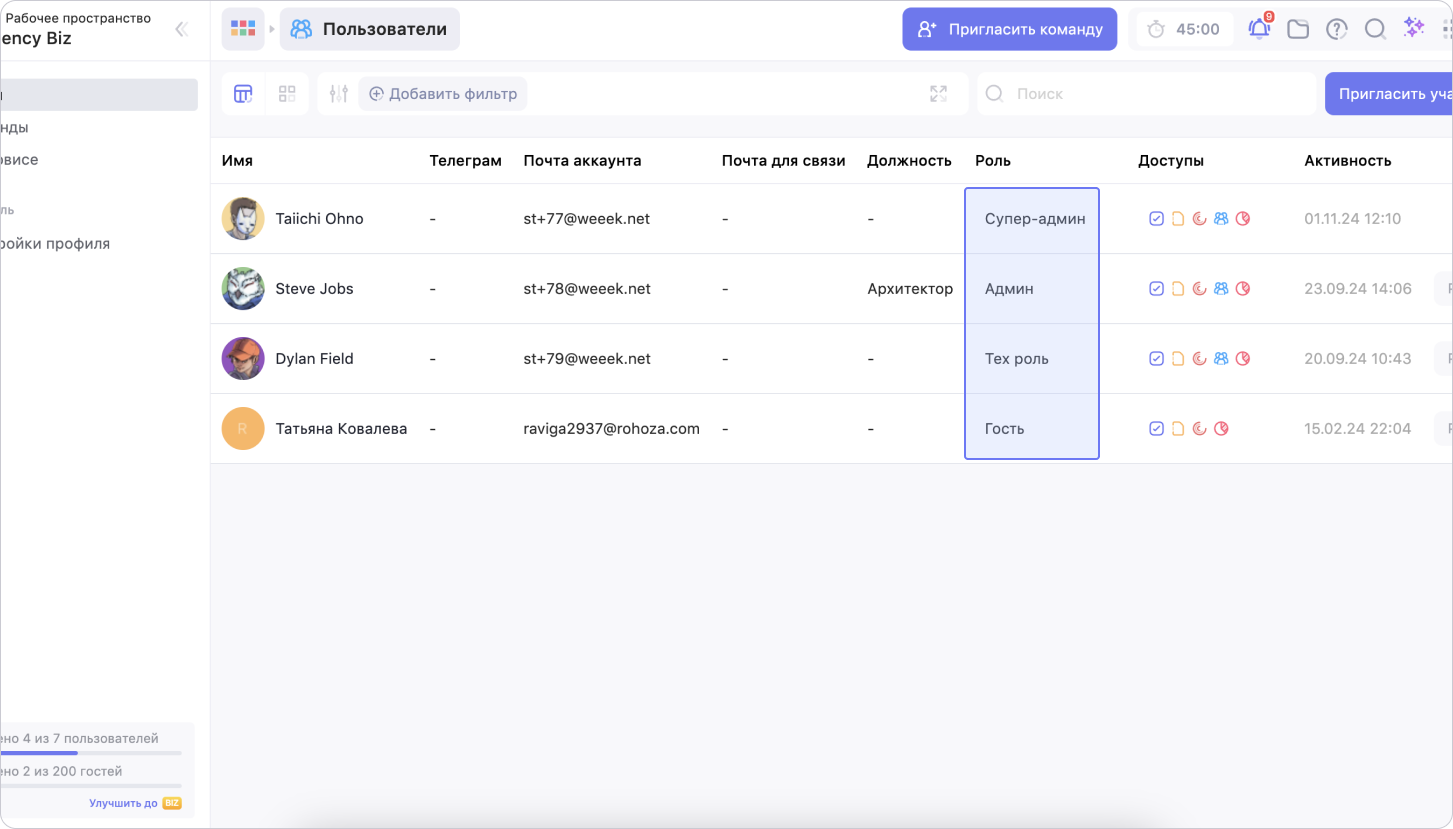 - Интеграции с Google Календарем, Miro, Figma, Google Docs.